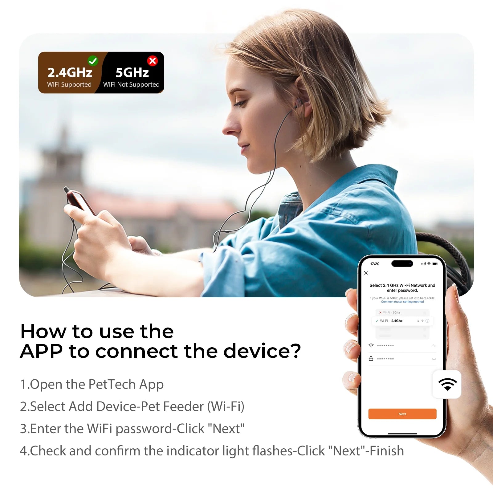 • WiFi App Control (2.4GHz) – Schedule meals, adjust portions, and share access with family via the PetTech app.